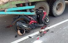 Yamaha Xeon tertekuk, setang ambayar setelah menancap di kolong truk tronton parkir, pengendara tewas