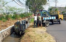 Daihatsu Taruna Niat Nyalip, Kaget Ada Mobil Patroli Polisi, Banting Setir Tergolek ke Got