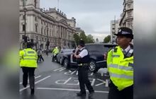 Iring-iringan mobil Perdana Menteri Inggris dicegat demonstran, Jaguar XJ Sentinel kena sundul Range Rover pengawal