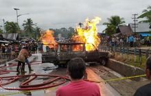 Toyota Kijang Super ludes dilumat api, kabin semburkan jago merah ke luar kaca di Padang Pariaman, Sumbar