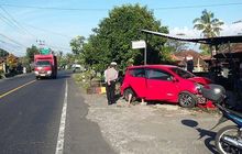 Toyota Agya ringsek terjang patok jalan dan rumah warga di Tabanan, Bali, ulah pengemudi sibuk geser sajen di atas dasbor