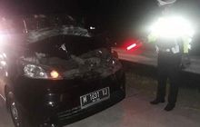 Nissan Evalia terjang bak truk tronton di tol Surabaya-Mojokerto, kaca pecah kap mesin penyok, beruntung empat orang selamat