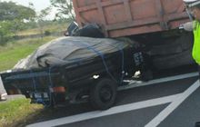 Suzuki Carry tertancap kolong belakang dump truk hingga kabin terpotong tak bersisa, pengemudi tewas terjepit di tol Kebomas-Manyar, Gresik