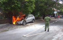 Sebuah Nissan X-Trail nyaris hangus terbakar seluruh bodi setelah api muncul di bagian mesin. Menurut dugaan ada korsleting listrik