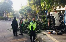 Sebuah Mazda2 ringsek parah setelah mengalami kecelakaan tunggal dan nyangkut di pohon. Kecelakaan diduga karena pengemudi mengantuk