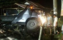 Daihatsu Gran Max hajar tiang listrik hingga kabin hancur, posisi terangkat karena ulang seekor kucing