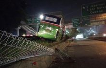 Bus Mayasari Bhakti terobos dan nyangkut di pembatas tol JORR karena pengemudi dibuat panik pengendara motor nyalip
