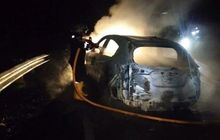 Honda HR-V ludes luar dalam hingga tak bersisa di Majalengka, Jawa Barat, damkar kuningan beraksi, dugaan karena korsleting