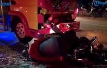 Sebuah Honda PCX ringsek setelah diterjang truk dari belakang hingga pemotor tewas di tempat. Pascakecelakaan sopir kabur