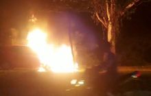Honda Brio Seret Motor, Berhenti Usai Dikeroyok Api Besar, Pengemudi Melarikan Diri