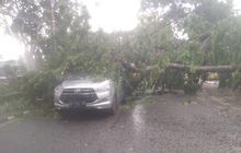 Kijang Innova Langsung Berhenti, Muncul Percikan Api di Atap Saat Tertimpa Pohon