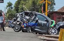 Toyota Calya remuk depan belakang setelah diterjang kencang kereta api di perlintasan tanpa palang pintu. Ini kondisi 6 penumpangnya