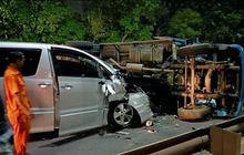 Toyota Alphard Hantam Truk Terguling di Tol Pulo Gebang, Satu Orang Terpental Diterjang Xenia