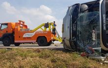 Bus PO Sudiro Tungga Jaya Pecah Ban di Tol Cipali, Loncat Jalur Lawan Lalu Terguling, Satu Tewas