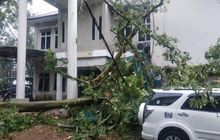 Daihatsu Terios di kantor Balai Besar Konservasi Sumber Daya Alam Sumatera Utara lecet dan penyok, tertimpa pohon tumbang