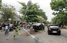 Honda City Nyundul Tiang Sampai Roboh, Bumper Rontok, Kemungkinan Ngantuk