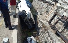 Datsun Go Panca Tinju Dua Pohon, Meluncur Tidur di Selokan, Pengemudi Nguap Terus