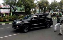 Rombongan mobil Fortuner sampai Mu-X milik Kapolres dan Dandim Bekasi jadi sasaran empuk pelemparan batu saat demo tola UU Cipta Kerja