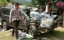 Nissan X-Trail terburai hingga komponen bodi tercecer usai jungkir balik di jalan Trans Sulawesi, Luwu Utara