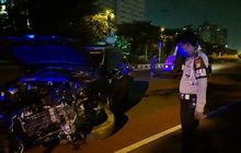 Hyundai Santa Fe Wajah Buyar, Patah Ban Kiri, Terjang Beton Pembatas Jalan