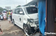 Suzuki APV bikin kacau di Jl Samudera, Padang Barat, kota Padang usai terjang bentor, warung minyak eceran, pikap serta toko baju