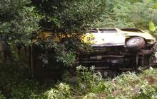 Isuzu Elf berisi lima penumpang terjun jurang di tanjakan Alin Ayin, Ciamis, satu orang terlempar, tewas tergencet