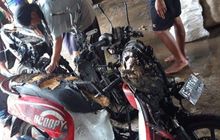 Honda Vario dan Scoopy meleleh bodi hingga bersisa rangkanya saja setelah terbakar saat ditinggal pemilik ke sawah.