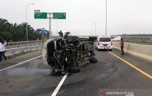 Kijang Innova Ambrol Depan, Hantam Pembatas Tol Pekanbaru-Dumai, Remuk dan Terguling