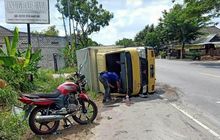 Honda MegaPro kena jegal truk box ambruk usai disosor bus PO Sinar Mandiri dari belakang, sokbreker depan sampai tertekuk