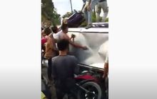 Toyota Avanza koprol berkali-kali hingga menimpa motor saat melintasi perlintasan kereta api karena bagian belakang dilibas kereta api