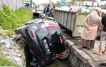 Suzuki Splash timpa motor di dalam got, pengemudi kaget banting setir ulah Honda Blade ngaco saat nyalip