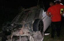 Toyota Etios Valco Hantam Tembok, Banting Setir Kejegal Selokan, Berakhir Hadap Langit