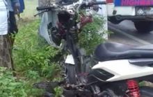 Honda Vario babak belur setelah kakek dan cucunya oleng saat menyalip mobil di depannya dan berakhir menghantam pohon asam