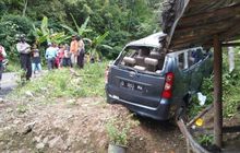 Toyota Avanza Penyok Pipi Kiri, Terguling Hantam Tebing, Penumpang Mental ke Jalan