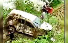 Toyota Fortuner terjun jurang sedalam 50 meter di kabupaten Tasikmalaya, Jawa Barat, bodi amburadul, pasutri selamat