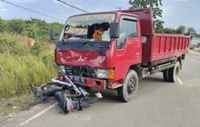 Honda Revo Terseret Aspal di Kolong Dump Truk, Mendadak Potong Jalur, Pengendara Terpental