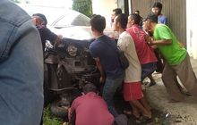 Kijang Innova Bumper Ompong, Nyebrang Jalan Lindas Scoopy, Terseret Masuk ke Ruko