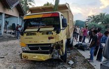 Honda BeAT Hancur Tergeletak, Pengendara Tak Bernyawa, Ditebas Dump Truk Dari Arah Berlawanan