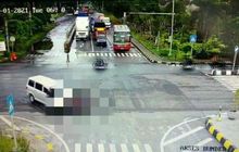 Suzuki APV jadi sasaran tubruk motor yang nekat menerobos lampu merah. Pemotor dan yang dibonceng berakhir terlempar dari motot