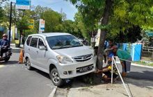 Daihatsu Xenia Pecah Ban, Oleng ke Kiri Bumper Nempel Pohon, Kaca Retak