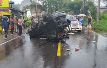 Suzuki Carry Remuk Jungkir Balik, Niat Salip Truk, Pemotor Lawan Arah Tewas Dihantam