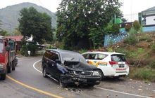 Toyota Kijang Innova milik LazisMu tampar Kijang Kapsul di tikungan, depan kanan sama remuk, niat antar sayuran ke korban gempa Sulbar tertunda