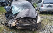 Honda Jazz seketika cacat tak berbentuk, bodi kanan terburai parah usai terjang truk parkir dalam kecepatan tinggi di Lhokseumawe
