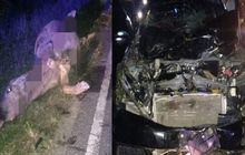 Honda Mobilio kena apes, remuk hingga kap mesin sampai kaca depan terkelupas usai bunuh seekor kerbau nyeberang jalan lintas Sumatera