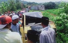 Mitsubishi L300 ringsek hingga atap gepeng, belok tabrak tiang gelimpang ke sawah, dua rombongan lamaran meregang nyawa