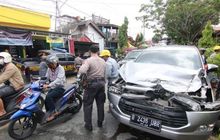 Toyota Kijang Innova, Honda Blade dan satu mobil bonyok digebrak truk tak kuat nanjak di Balikpapan, tiga orang luka