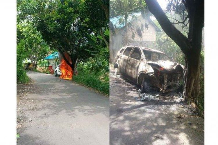 Toyota Rush ludes dilalap api hingga hanya menyisakan rangkanya saja. Awalnya keluar asap dari bawah setir