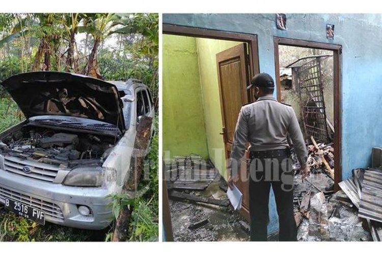 Sebuah Daihatsu Taruna beserta rumah hangus setelah sengaja dibakar. Pelaku yang terlihat santai bikin warga heran