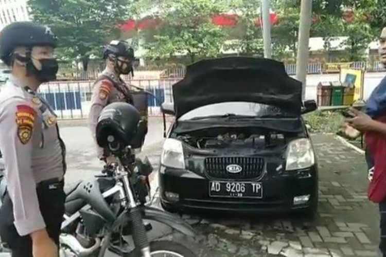 KIA Picanto terbakar di kawasan stadion Manahan, berawal mesin mati, starter keluar api, jago merah dijinaka pakai jaket