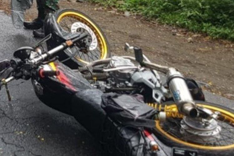 Honda GL dikendarai pelajar tergeletak dengan kondisi pengendara meninggal dunia. Adu wajah lawan truk di tikungan dan jalan sempit